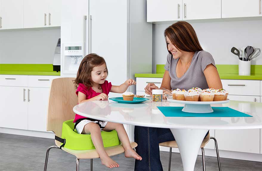 The Bumbo Booster Seat is made for toddlers to help them sit comfortably at the table.